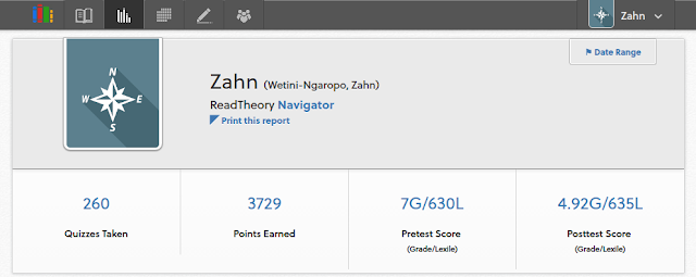 For 20 minutes each day ls2 does read theory. It is sometimes difficult so we can look back at the story and answer the questions. This helps us to understand the text. We think about what the question is asking us to do. We have grades. We earn new titles and levels depending on the points we earn. My current grade is grade 5. That means that i'm reading paragraphs between 1 to 10.